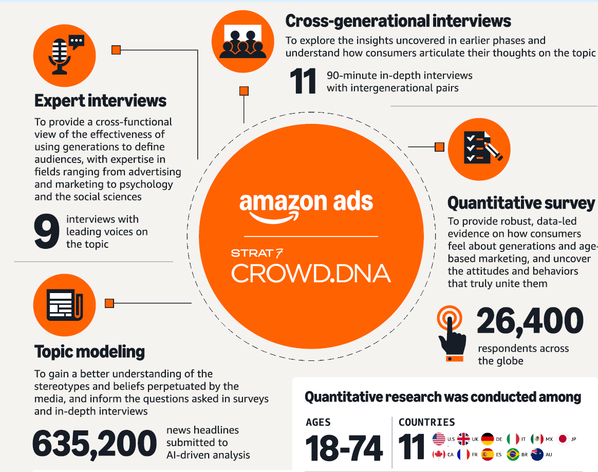 Conecté todo esto con un brillante estudio que recién publicó Amazon Ads dando tendencias actualizadas de mercadotecnia, y se llama: “Beyond the Generational Divide” (Más allá de la división generacional).*